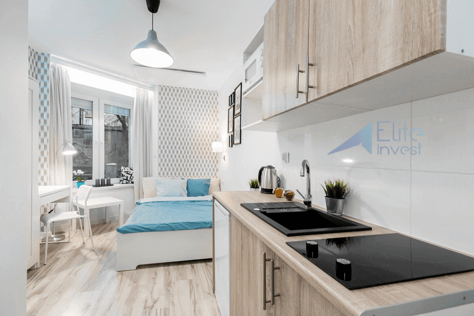 Dwupak mikrokawalerek został zakupiony przez inwestora końcowego jeszcze w trakcie remontu. Długoletnia umowa najmu z gwarancją czynszu oznacza dla inwestora wygodę oraz pewny i bezpieczny zysk na poziomie 8% rocznie.